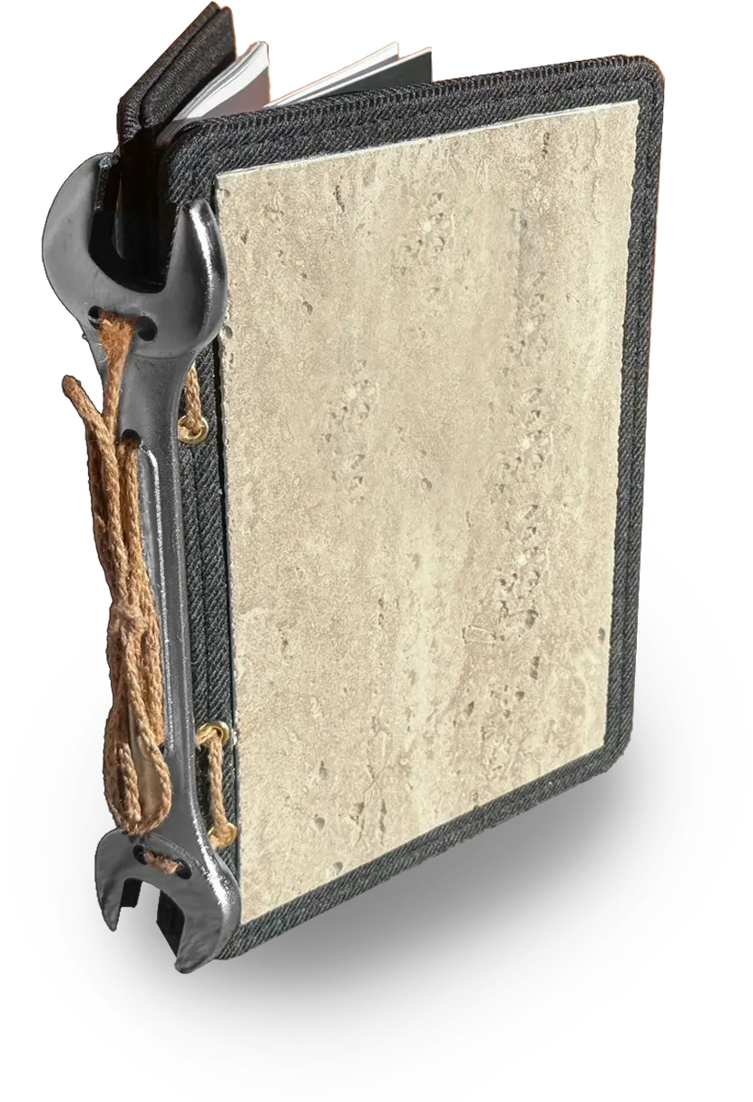 The spine features a real wrench as its binding structure—a nod to industrial humor and a celebration of functional aesthetics. More than a visual surprise, the wrench serves as a structural anchor. It symbolizes the spirit of culinary craftsmanship: handmade, solid, and uncompromising.